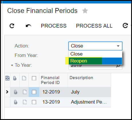 2. Click on Action>Reopen