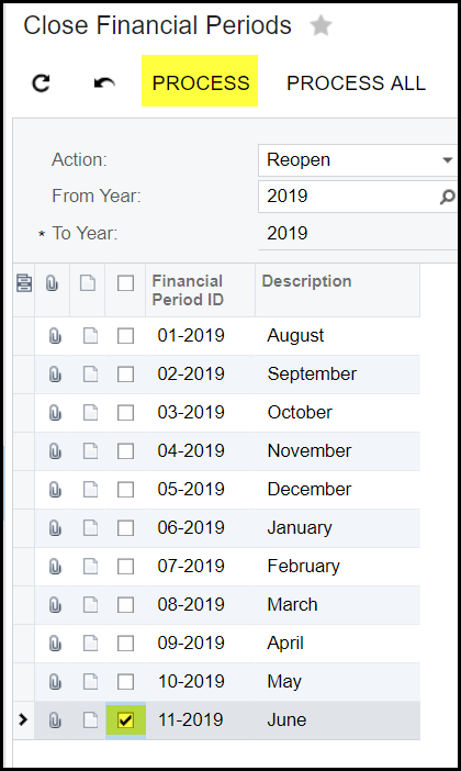 3. Tick your month or more than one month is also possible, this can be done even if the financial month is close for all