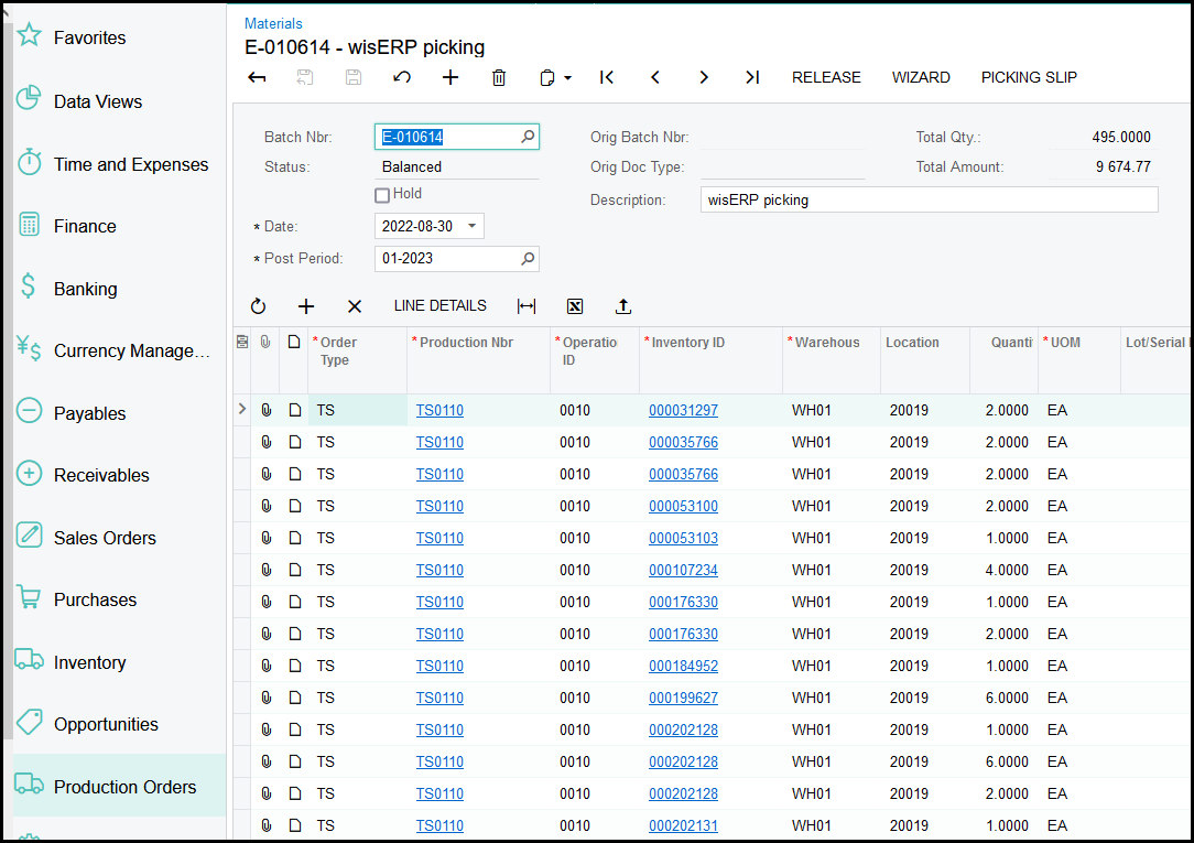 Balanced Material or Issue Transctions