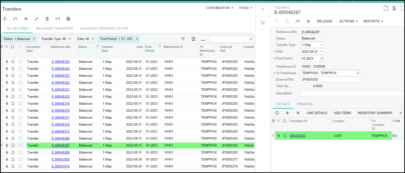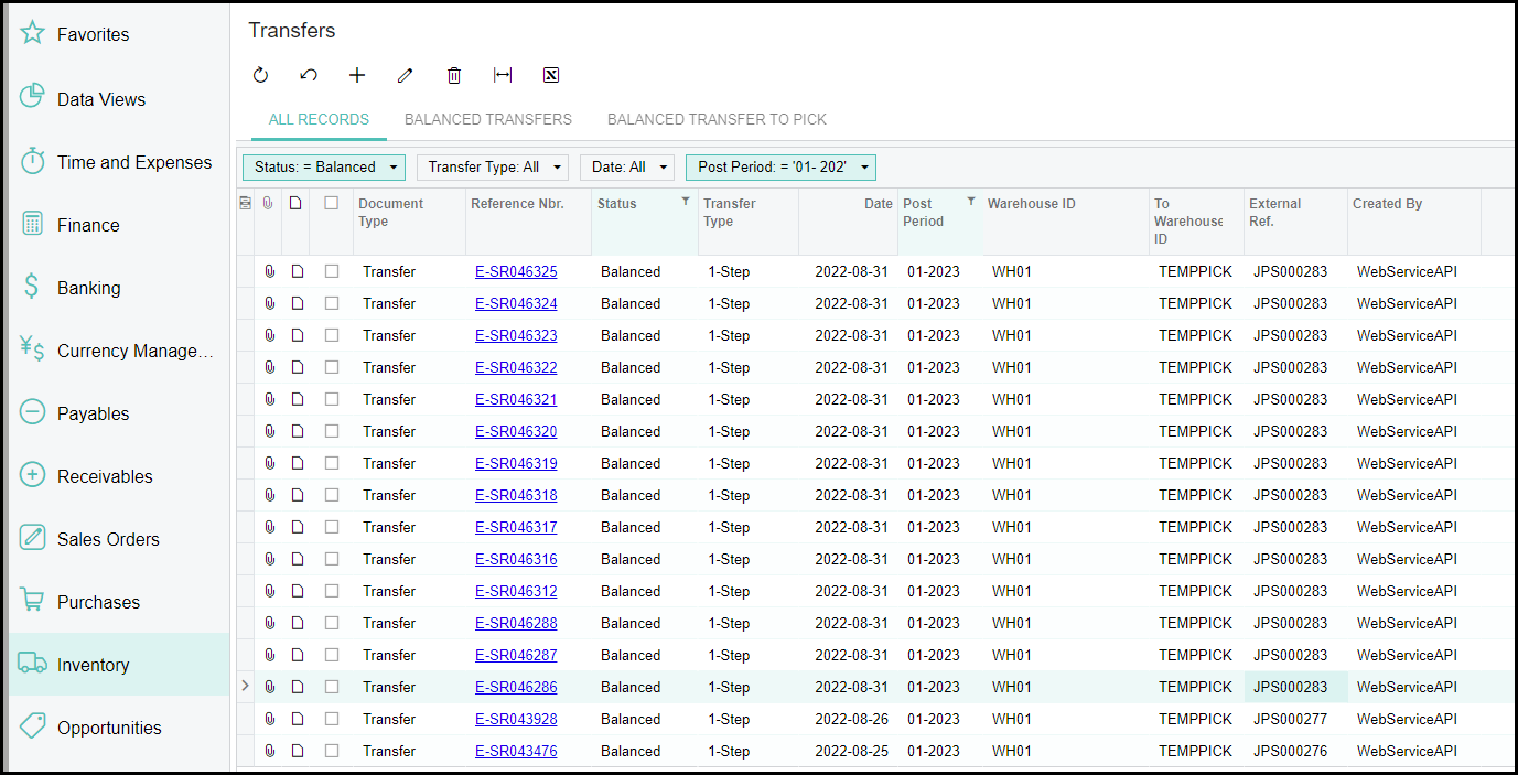 4. I is not good practice to deleted 'transfers' that is in balanced state from Acumatica.