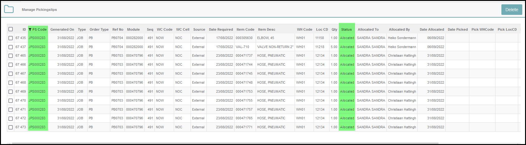 3. Go to wisERP web and manage the pickingslip. Check the pickingslip status is 'allocated' or unallocated. Then you can delete it from the screen. Never delete it from Acumatica.