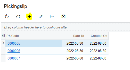 2. Click on the " + " (New Record) to create a new pickingslip:
