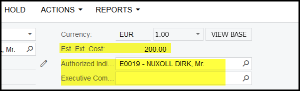 5. When you save your requisition Acumatica will check the rules for approval and will give you an error and indicate what you need to correct.