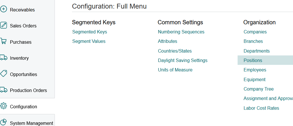 1. Click on Configuration>Organization>Position