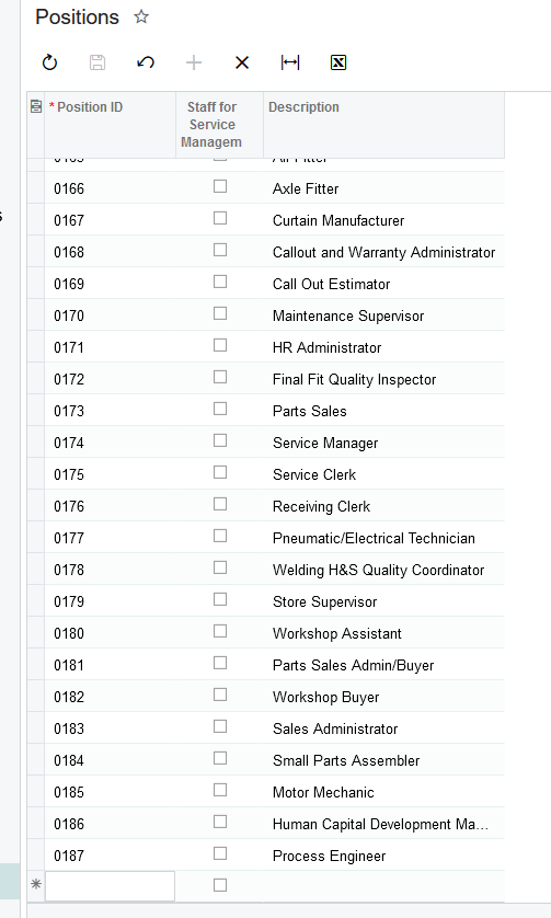 3. Click on the '+' to add a new position, type in the next Position ID number and Description.