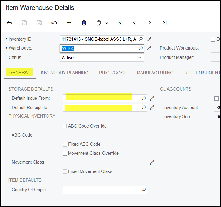 4. Click on General> select the issue from and receipt to locations. (Not compulusory)