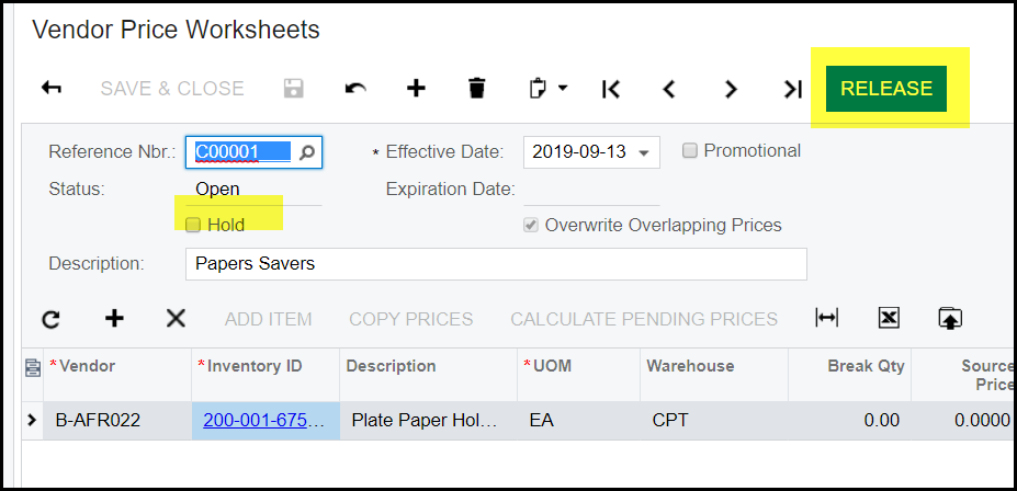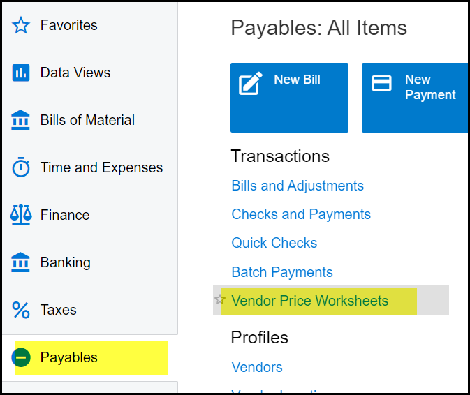 1. Go to Payables>Transactions - Vendor Price Worksheets