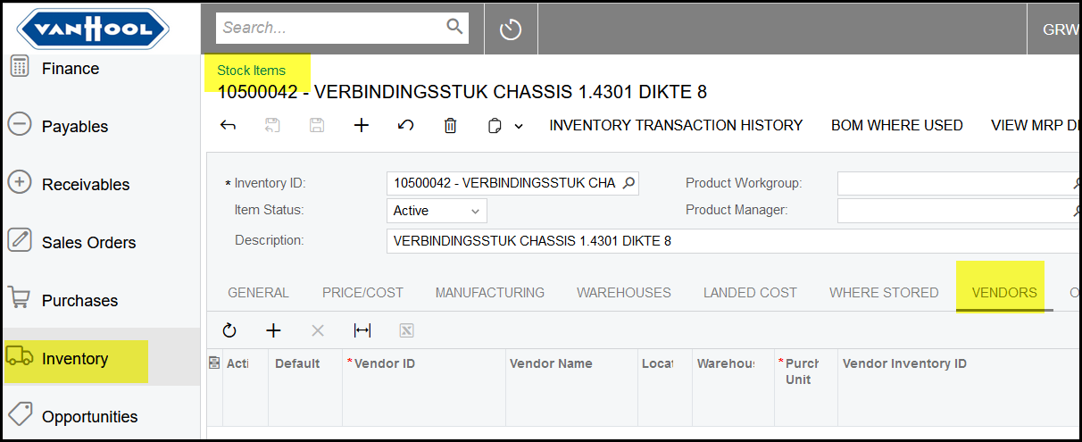 1. Go to inventory>open the item you want to edit click on the vendors tab.