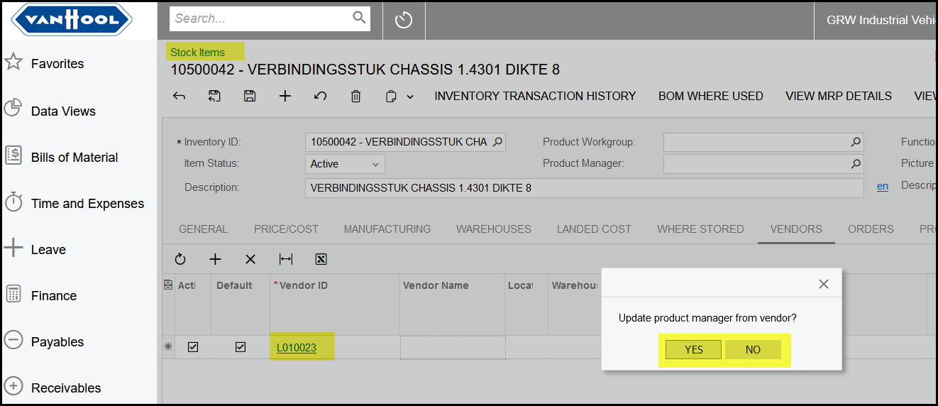 If you click yes, then the 'buyer' linked to the supplier will be filled in.
