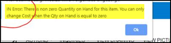 5. When you get an error when you click on update cost, it means that the qty of the item is not zero therefor the cost cannot be updated.