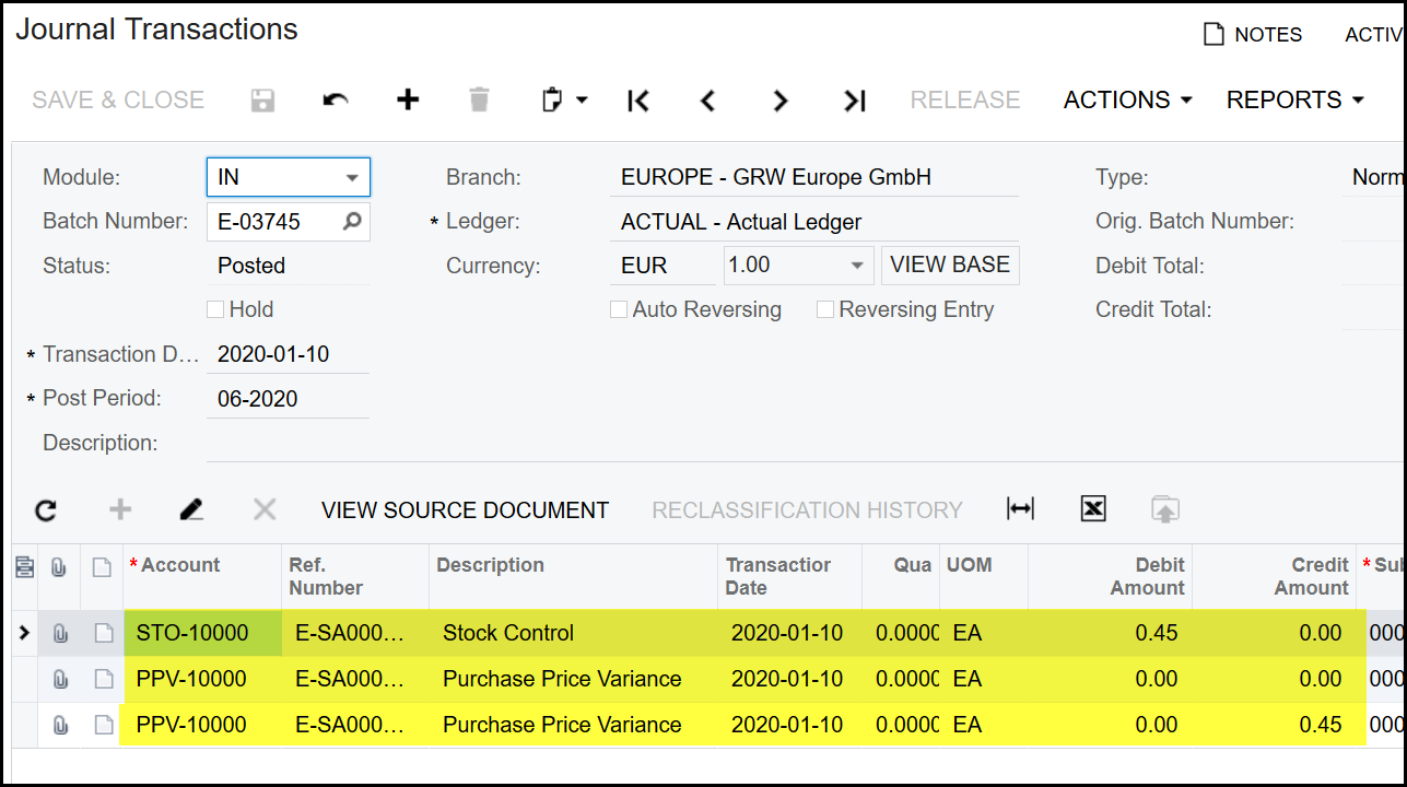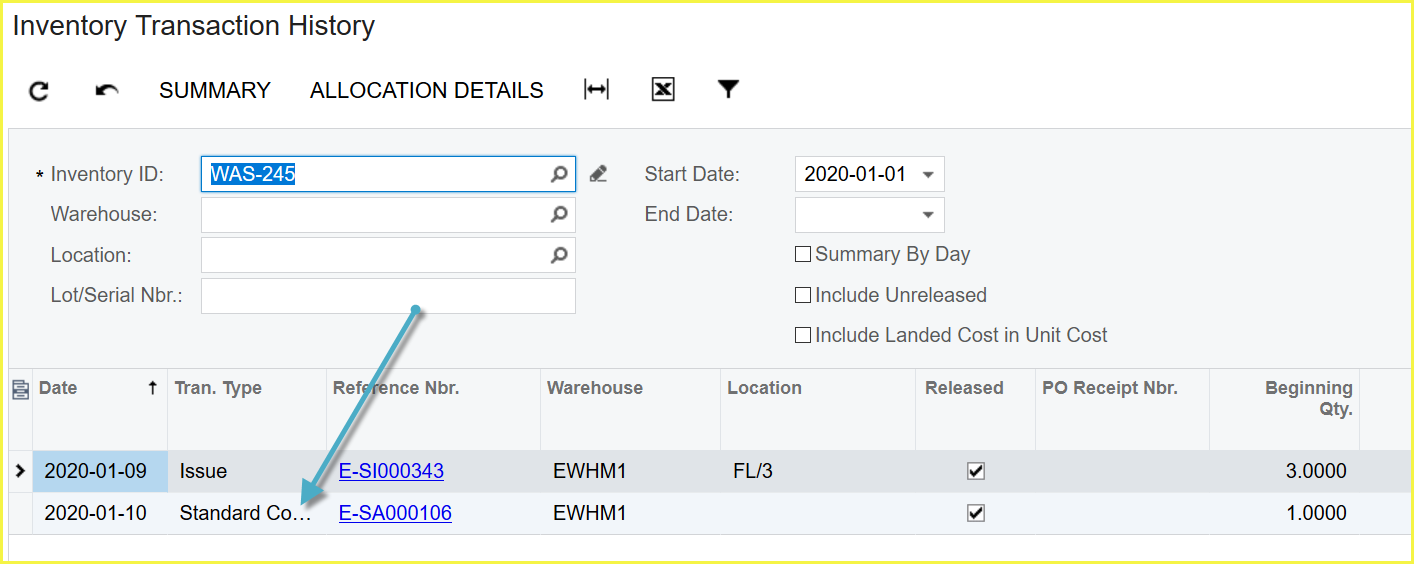 9. You will the the standard cost transaction in the history.