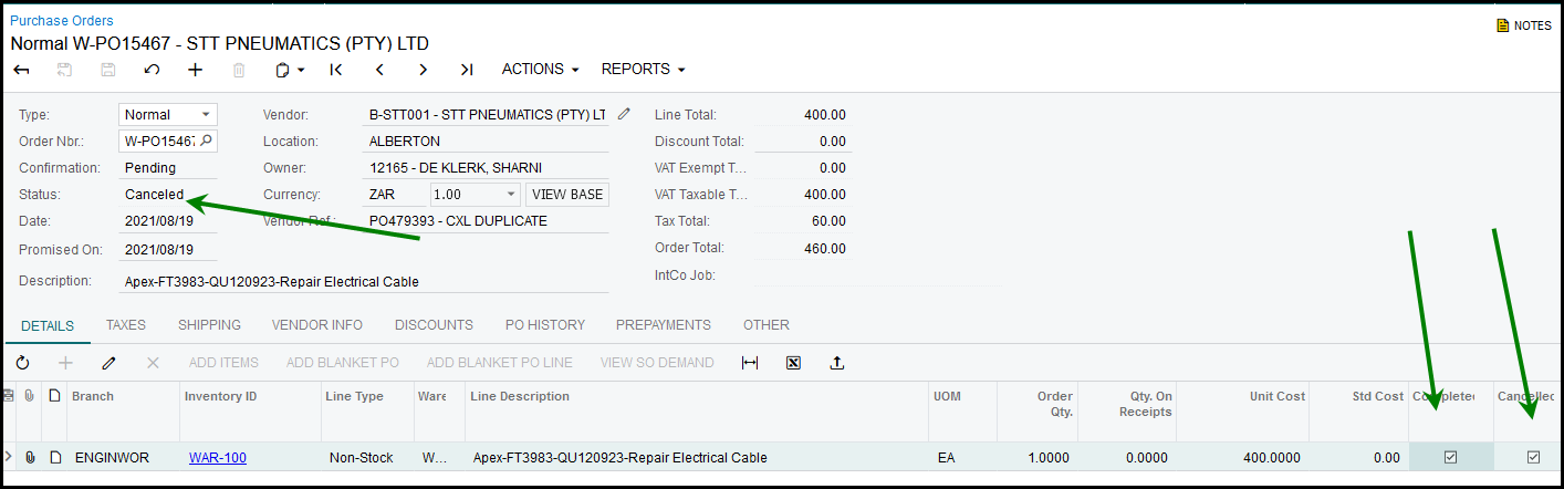 How to cancel a PO with a status as complete