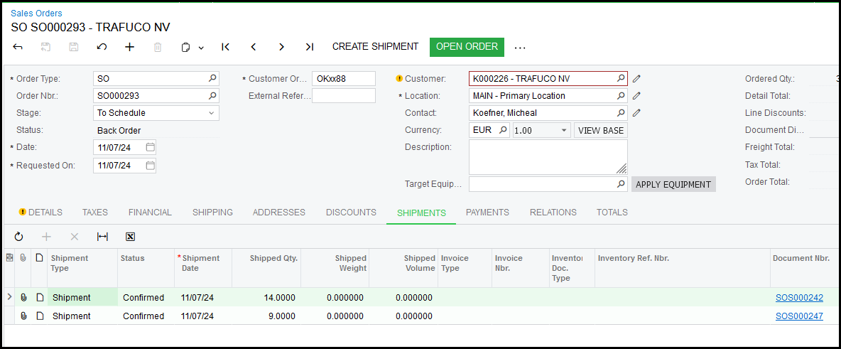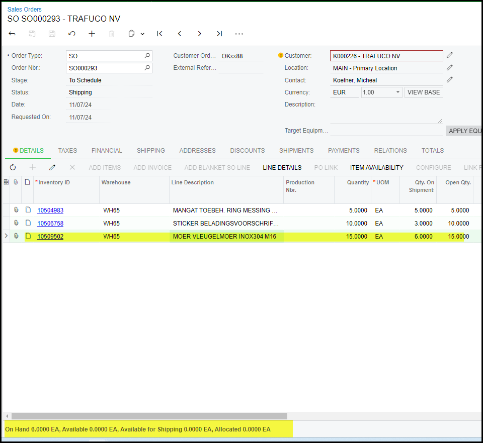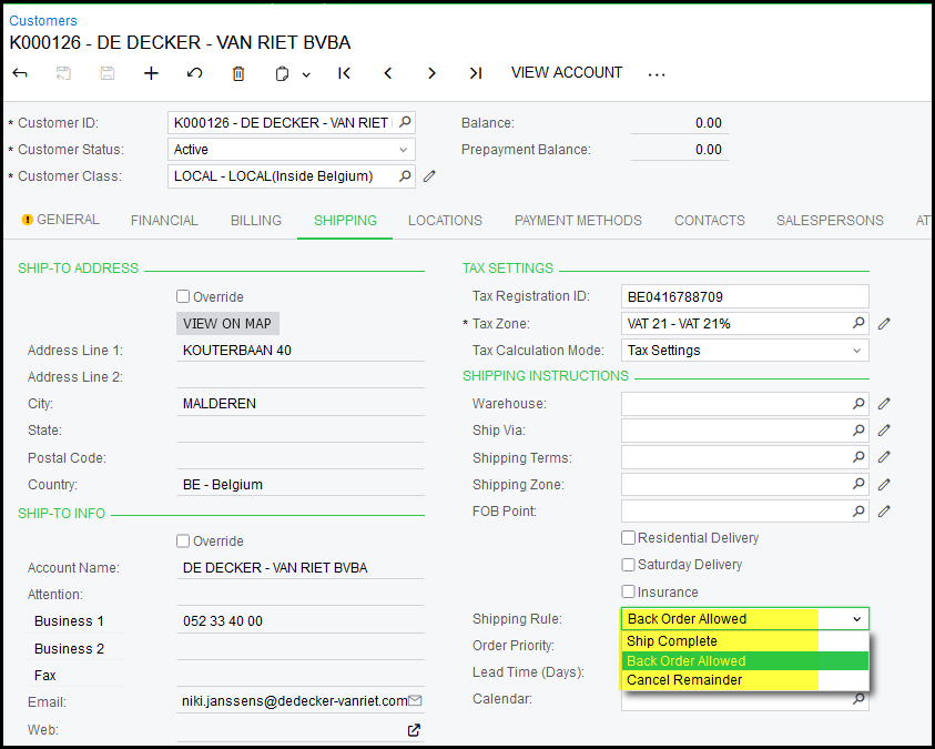 6. On each sales order line has a shipping rule. The rule can be set per customer. The default is set as 'Back Order allowed'