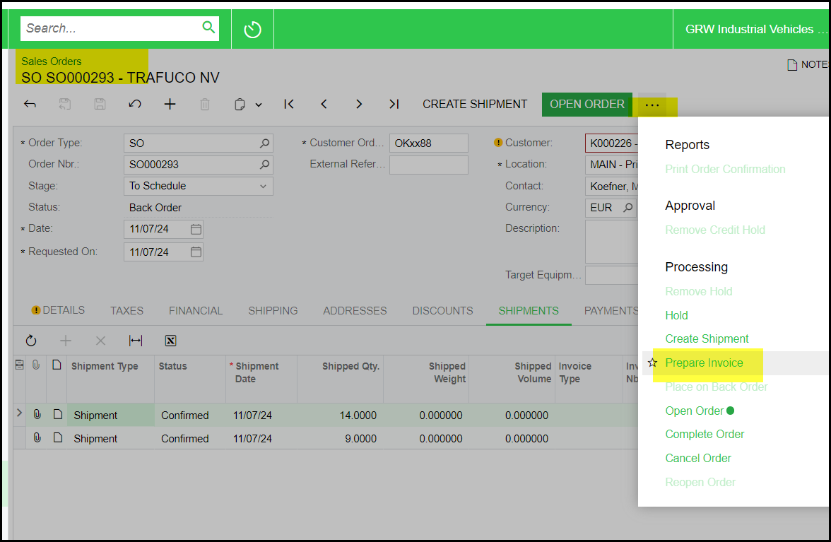 10. Once your Sales order is confirmed. You can prepare invoice.
