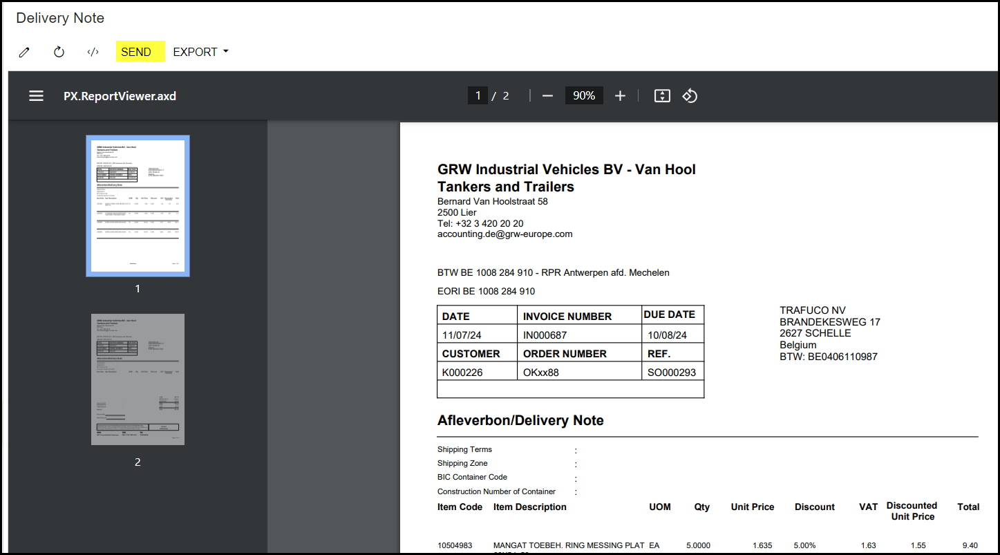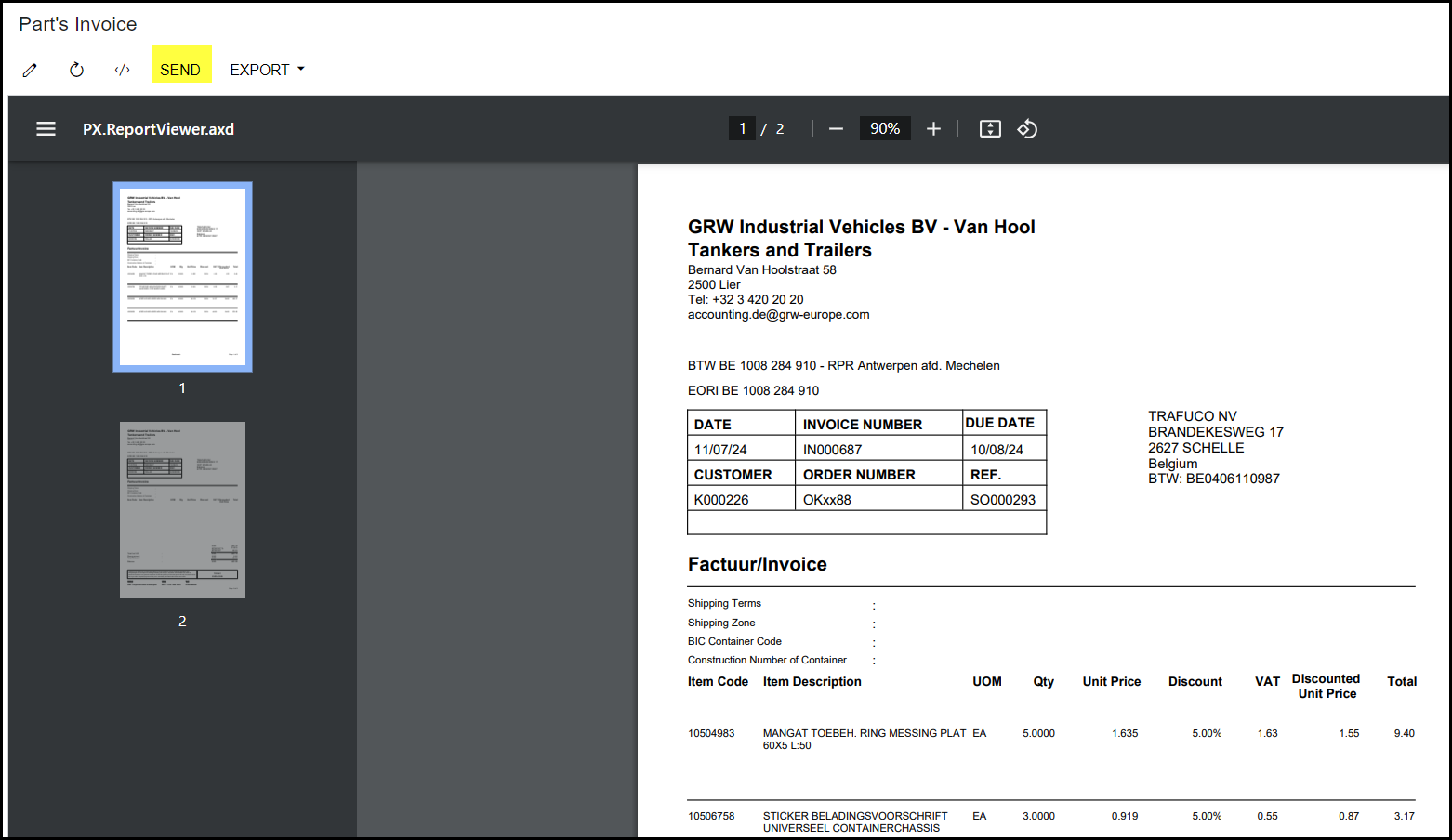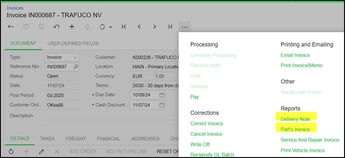 11. Print your 'Part's Invoice' and 'Delivery Notes' if necessary.