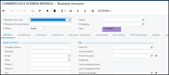 3. Only specified people will have the rights to change a prospect to a customer/vendor. (contact your accounts department to assist).