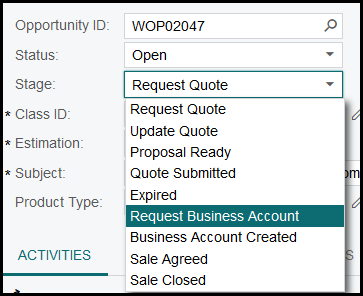 9. If you are a KAM and want your prospect converted to customer. Go to you opportunity select the Stage - "Request business account".