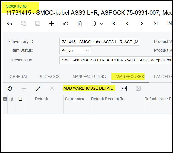 Click on Add Warehouse Detail.