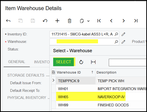 6. Select your warehouse.