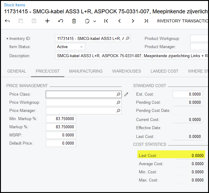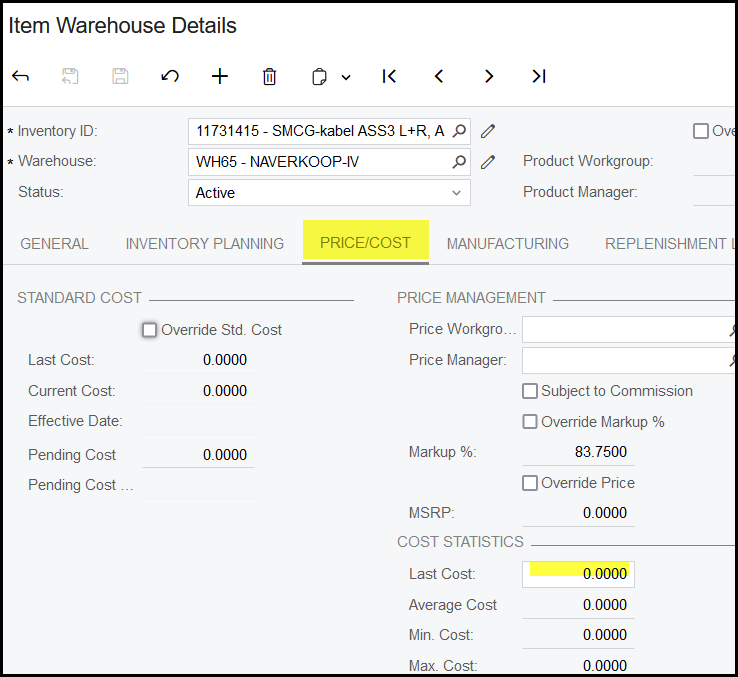 If the field is not enabled go to warehouses and add your price see below.