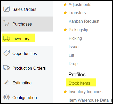 1. Click on Inventory>Stock items