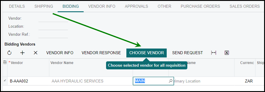 16. Once you have completed all your lines go to 'BIDDING' and click on the '+' to add your vendor.