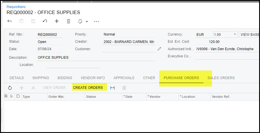 7. Click on create orders.
