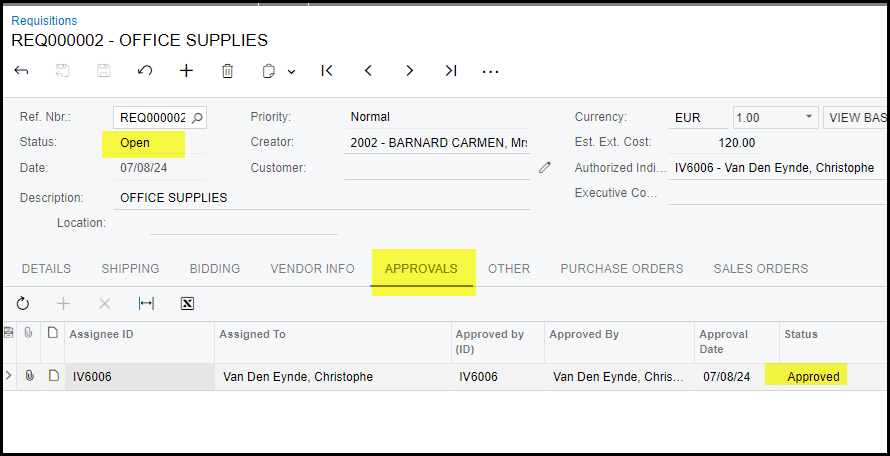 6. Your requisition status is 'on hold'. Only when you take it off hold other approvers will see it and it can be approved. Make sure about your