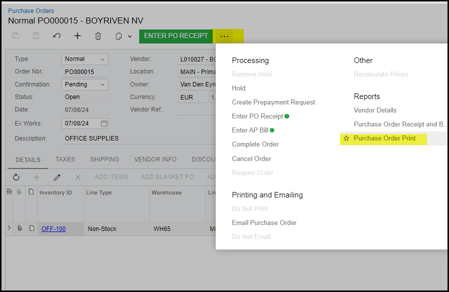 8. Open your purchase order.