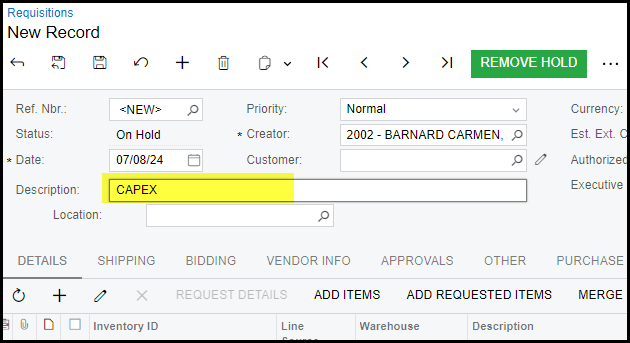 amount before you take it off hold. Your requisition will show 'pending approval, you can also see that in the 'approvals' tab.