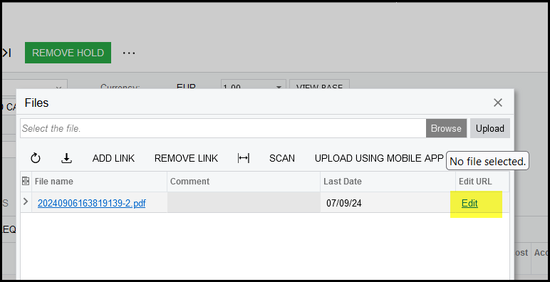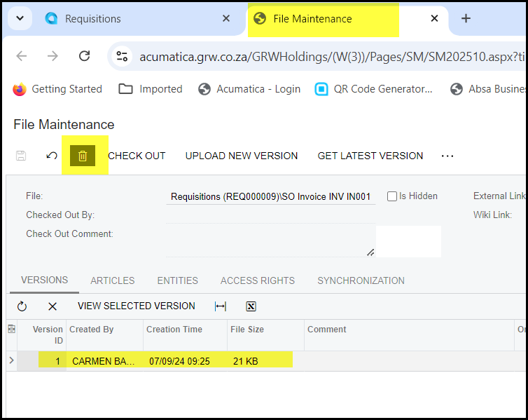 3. When you close the maintenance screen and go back to your requisition it will look like you did not delete your file. Just refresh your browser.