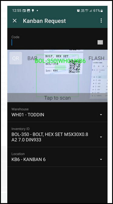 2. On your mobile device go to GRW>Warehousing>Kanban Request.
