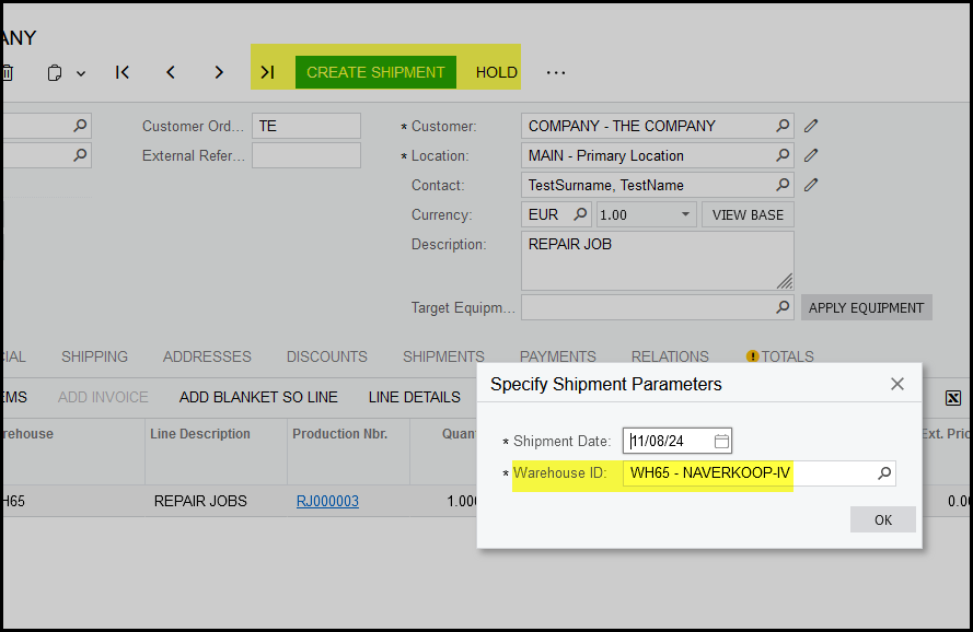 2. Create shipment.