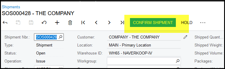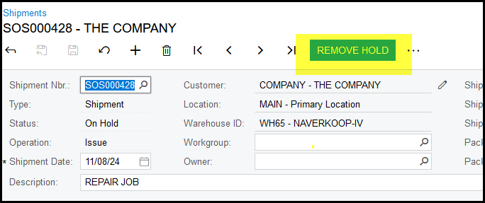 3. Remove hold and confirm shipment.