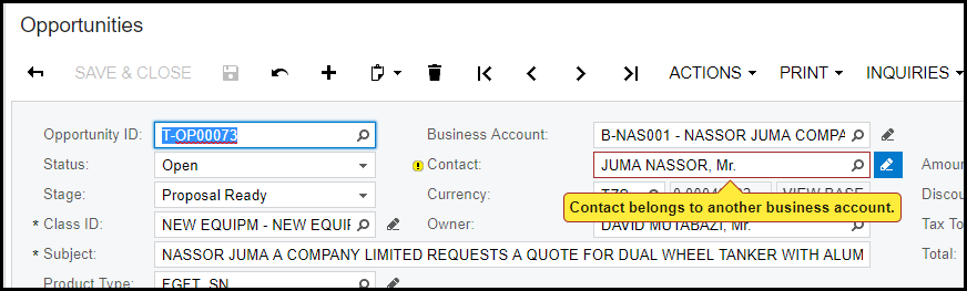 1. A Contact has to be linked to a business account to convert a opportunity to a sales order.