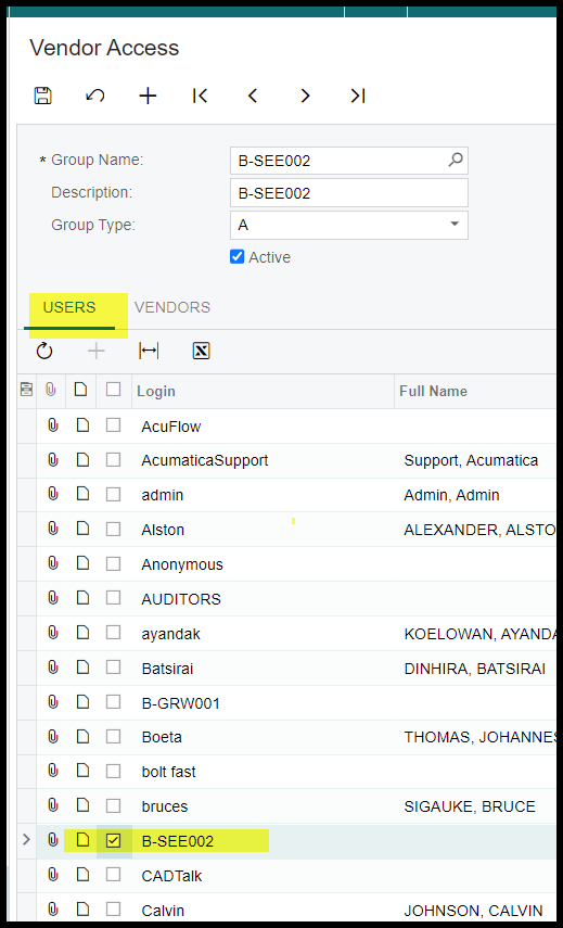 3. Once the user is created, go to row-level security and link the user(vendor).