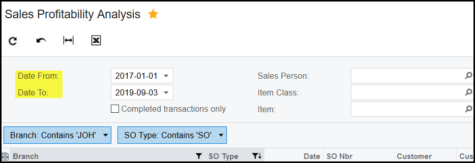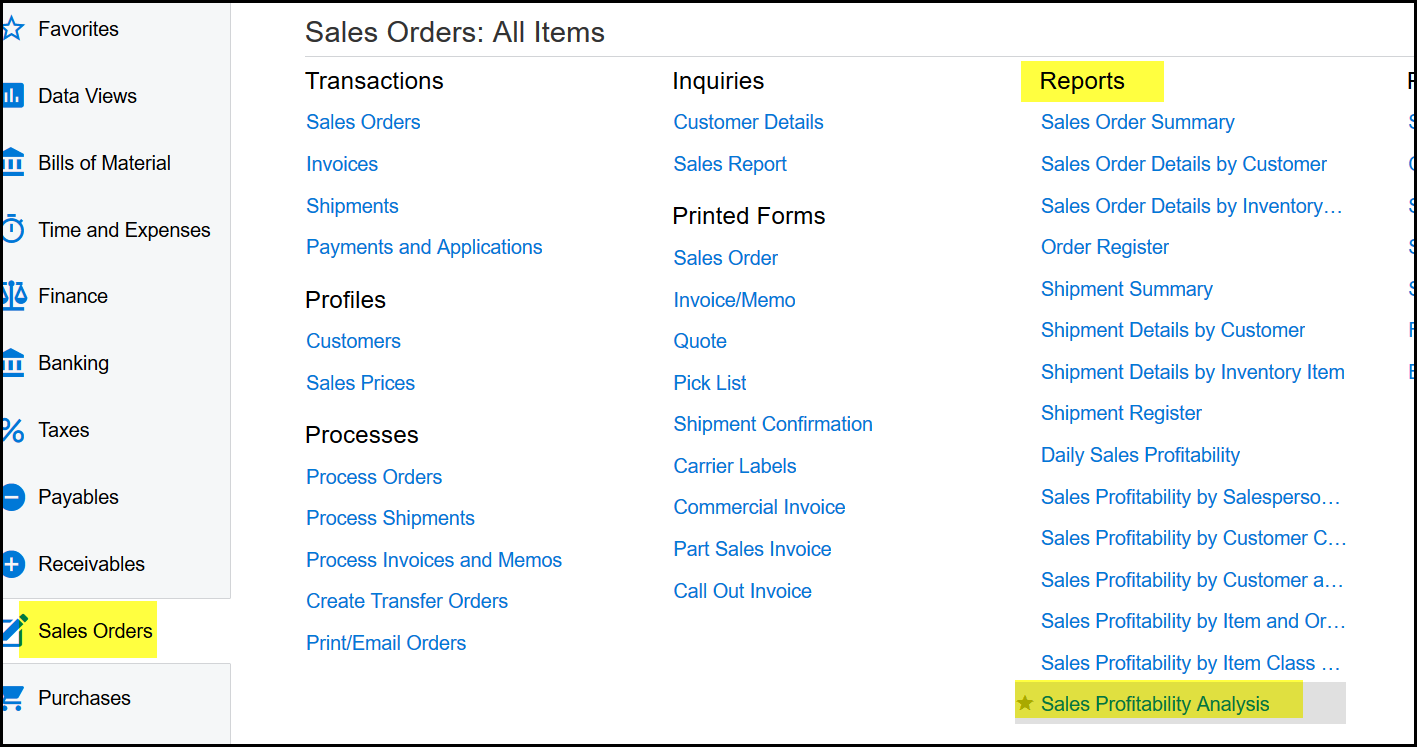 1. Go to Sales orders>Reports - Sales Profitabiluty Analysis