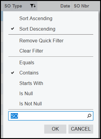 5. If you only want to see parts sales use the 'SO Type' column to filter on only 'SO'.