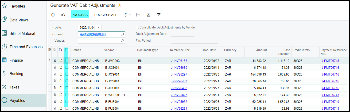 5. Payables>Processes>Generate VAT debit Adjustments
