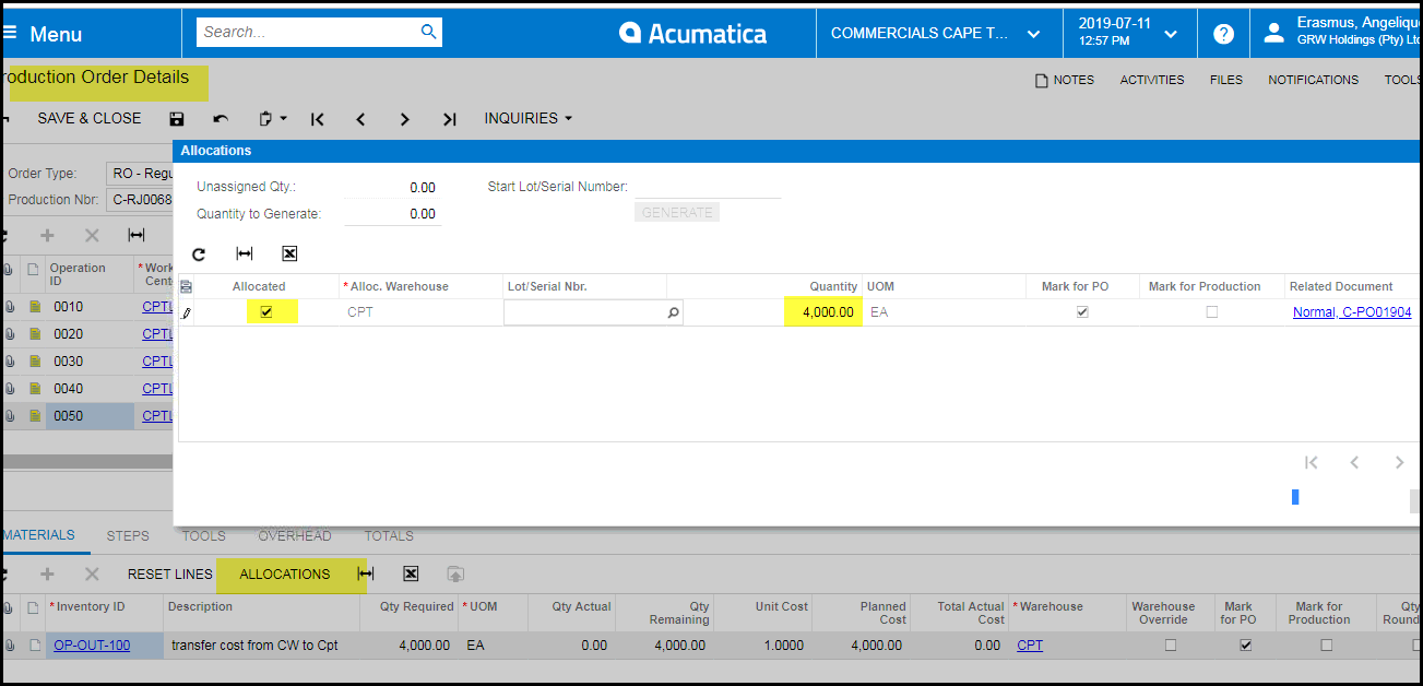 - 11. Check the the qty on the allocation screen is what you want to allocate.