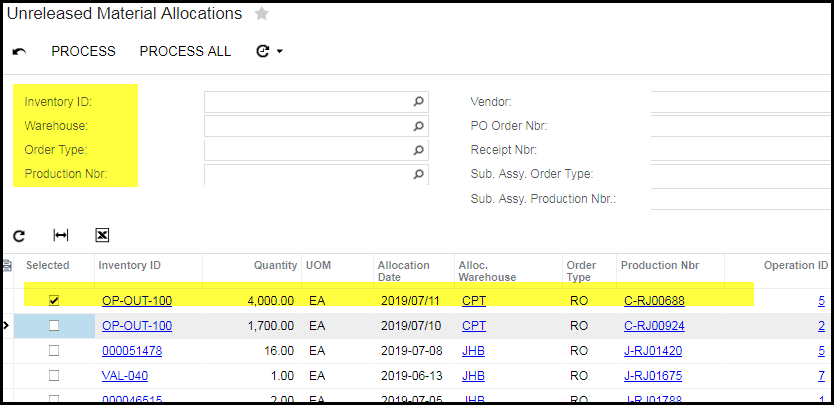 - 13. To release the material - Go to production orders> transactions> unreleased material allocations