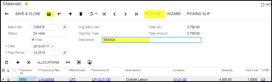 6. Save and release when sure your qty is correct.