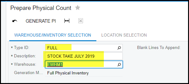 5. Click on 'GENERATE PI', to generate your stock take.