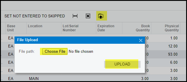 9. Once you have entered your quantities on the excel sheet you can import it. See below.