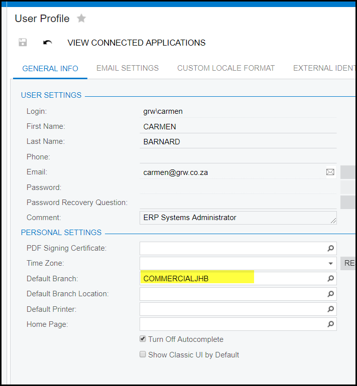 How to set a specific branch as default each time you access Acumatica