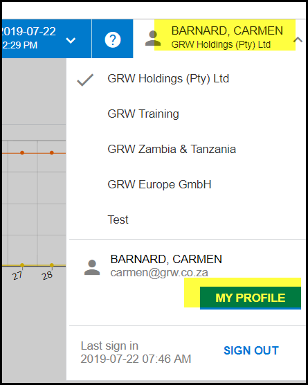 1. Click on your name on the top right corner.