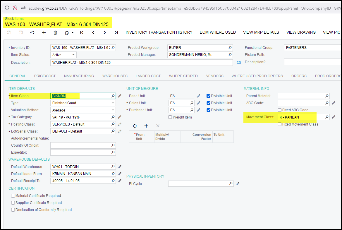 2. You must add kanban locations to the stock item. This indicates all your kanban locations for this specific item.