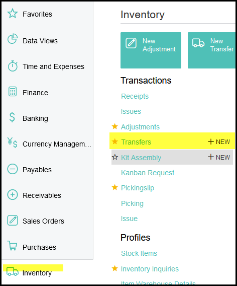 1. Go to inventory>transactions>transfers +