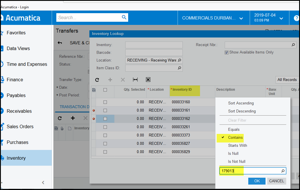 13. Remember if you are search for an item to use the coloum 'inventory id', double click, tick contains and type