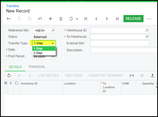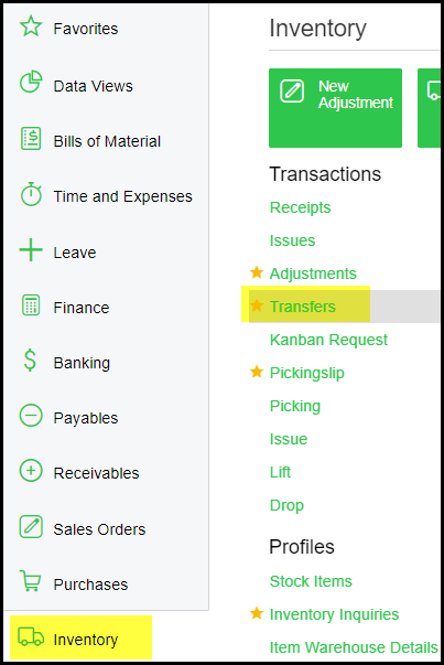 1. Go to Inventory>Transfers